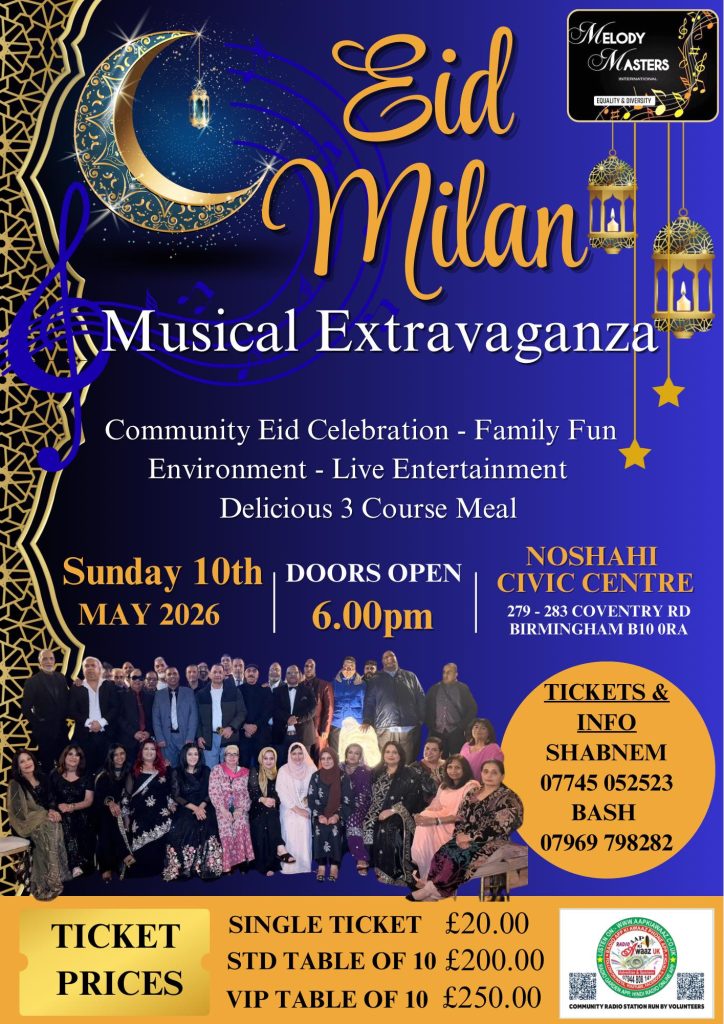 To book, please contact Zulfiqar Hussain 07380965181 or Mohammed Basharat 07969798282.