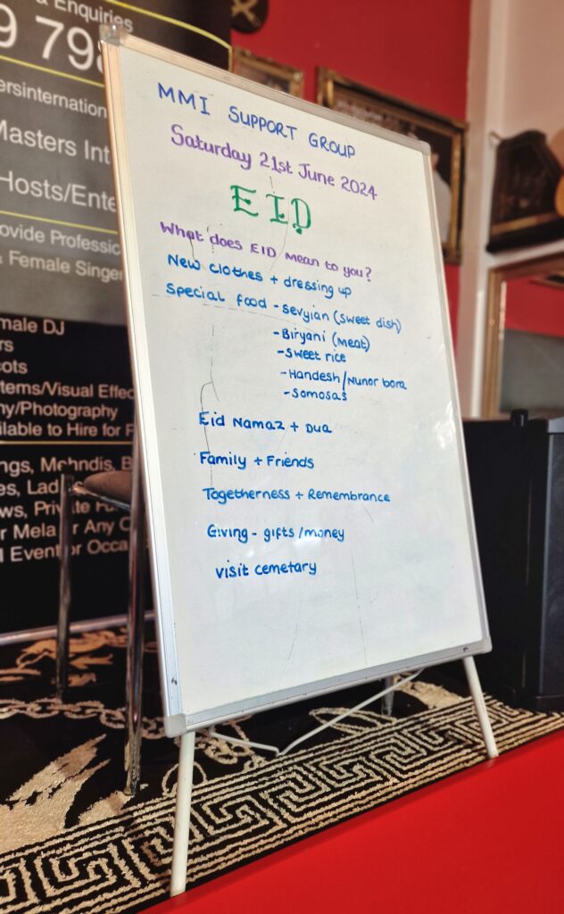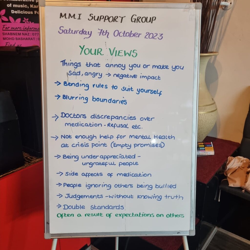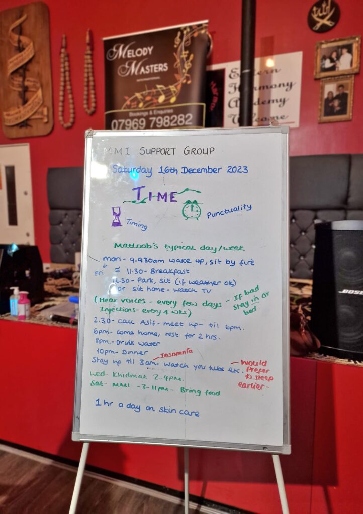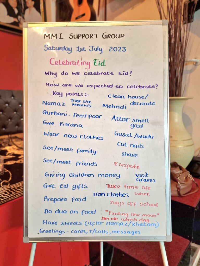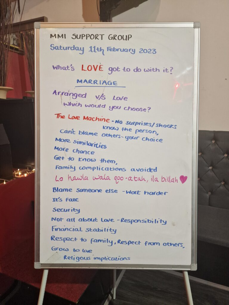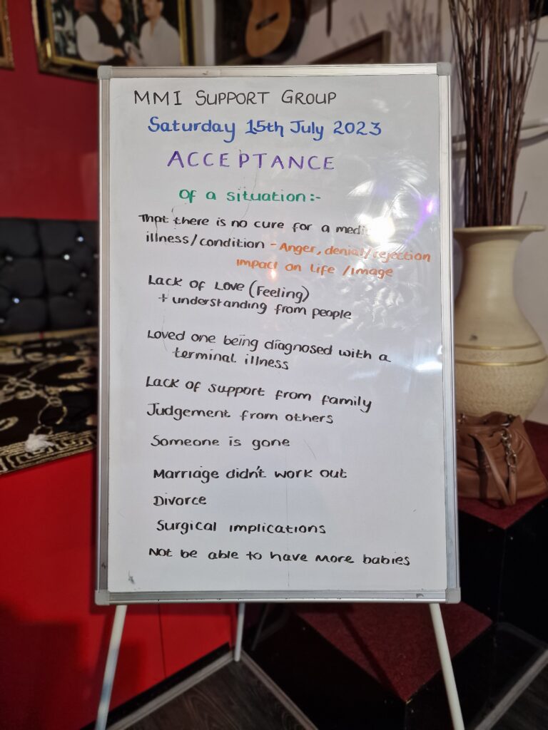 True to MMI values, we provide a homely environment and a safe space. A weekly topic is planned according to the needs and wishes of the group but always allows for people to share their views and concerns. We offer a self-expression platform which aims to boost self-esteem and increase confidence. There are also fun activities to encourage real human interaction.