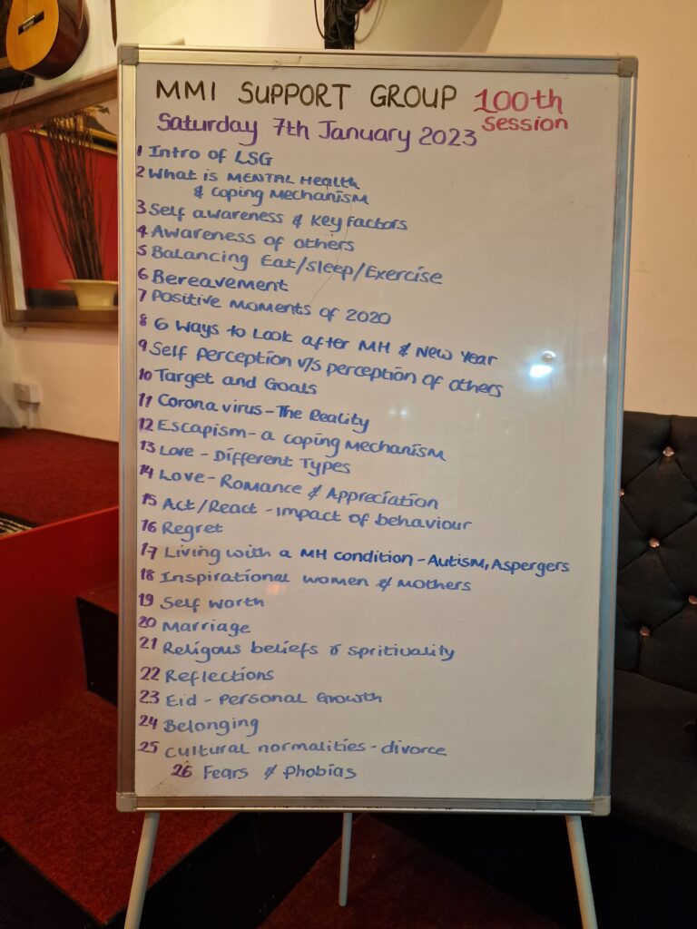 A service set up in November 2020, in Birmingham for people struggling with Mental Health Issues and Mental well-being during Lockdown. It was originally called Lockdown Support Group. In line with government guidelines this service allowed for up to 15 people to meet on a Saturday afternoon from 3pm till 6pm.